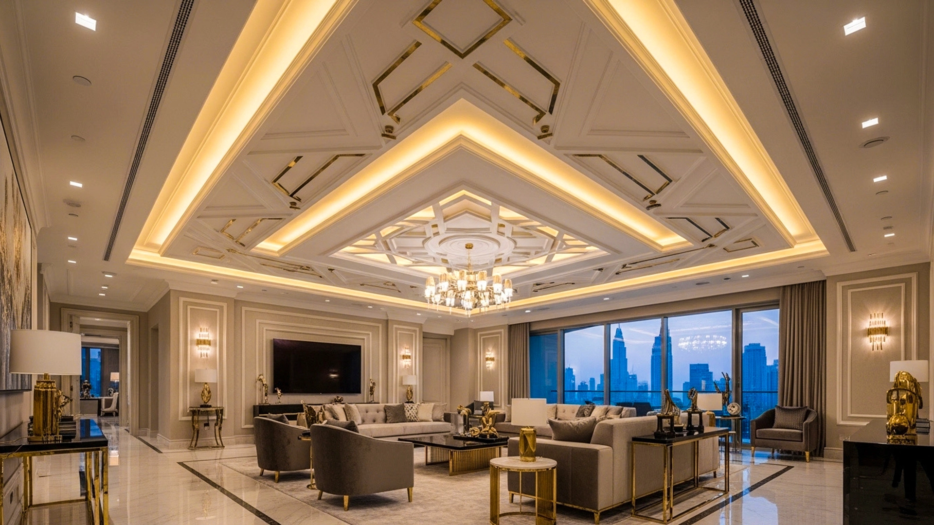 At Enrich Living, we deliver premium custom gypsum ceiling and lighting services in UAE. From modern tray designs to luxury lighting, we transform your ceilings into architectural features—seamlessly executed from design to finish.